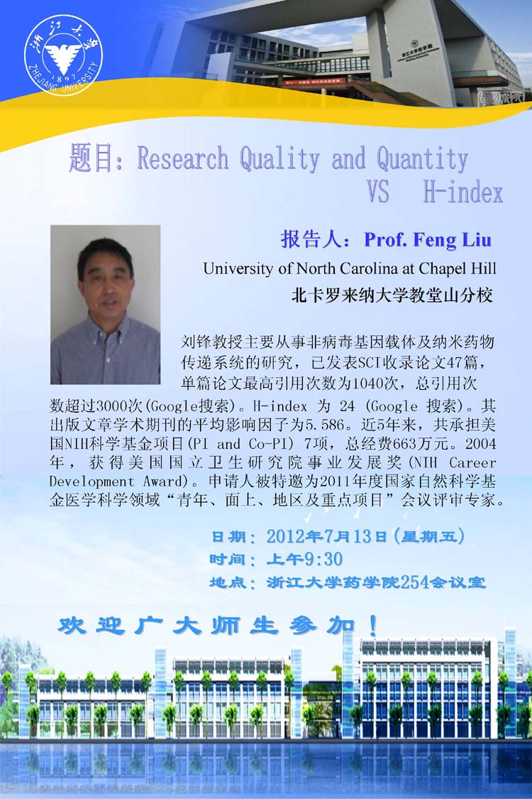 Place: Room 254, the College of Pharmaceutical Science, Zhejiang University.