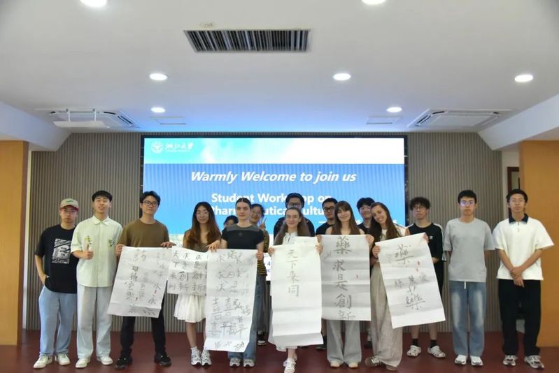 Students participated in exchange programs blending pharmaceutical expertise with traditional Chinese culture, such as the herbal pouch-making competition and calligraphy activities. Through the herbal pouch-making competition, students learned about the efficacy of various Chinese herbs like astragalus, atractylodes, and angelica dahurica, experiencing the charm of traditional Chinese medicine culture. In the calligraphy contest featuring the character “药” (medicine), participants explored its etymology and meaning, gaining a profound understanding of the original aspiration and mission of studying and researching new drug development to serve human health.