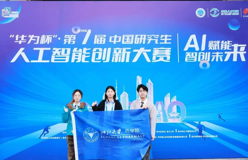 At the grand finals of the 7th China AI Innovation Competition, the student team of Jingxuan Ge, Shicheng Chen, Youqiao Qian and Jieshu Jin from the School of Pharmacy Zhejiang University stood out with a stellar performance and won the First-Prize.
